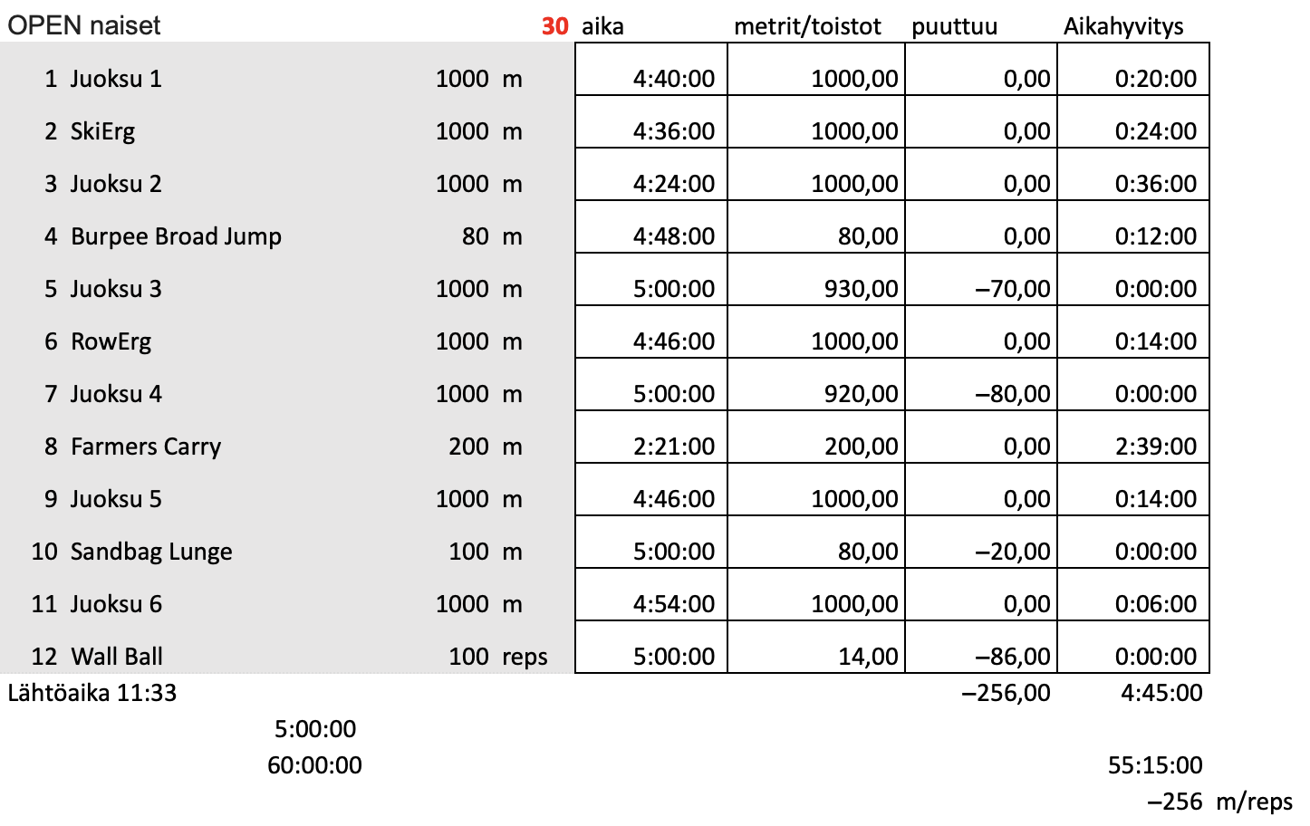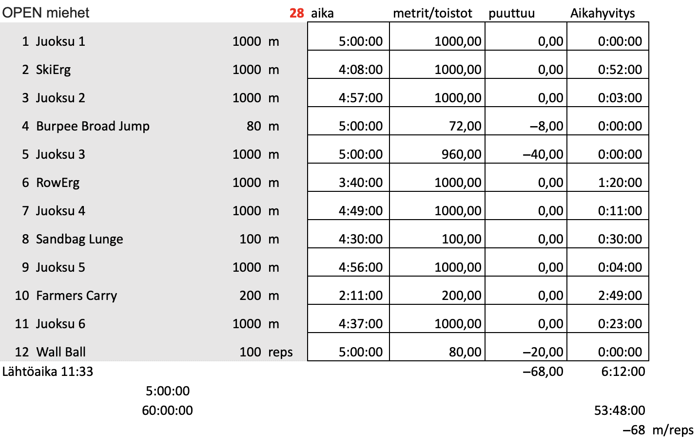 KIITOS – HYROX-kisasimulaatiopäivä oli huippu