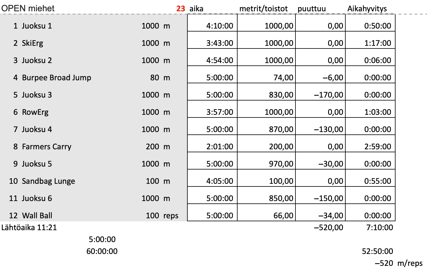 Kilpailija 23 – 52:50:00 / -520 m/reps